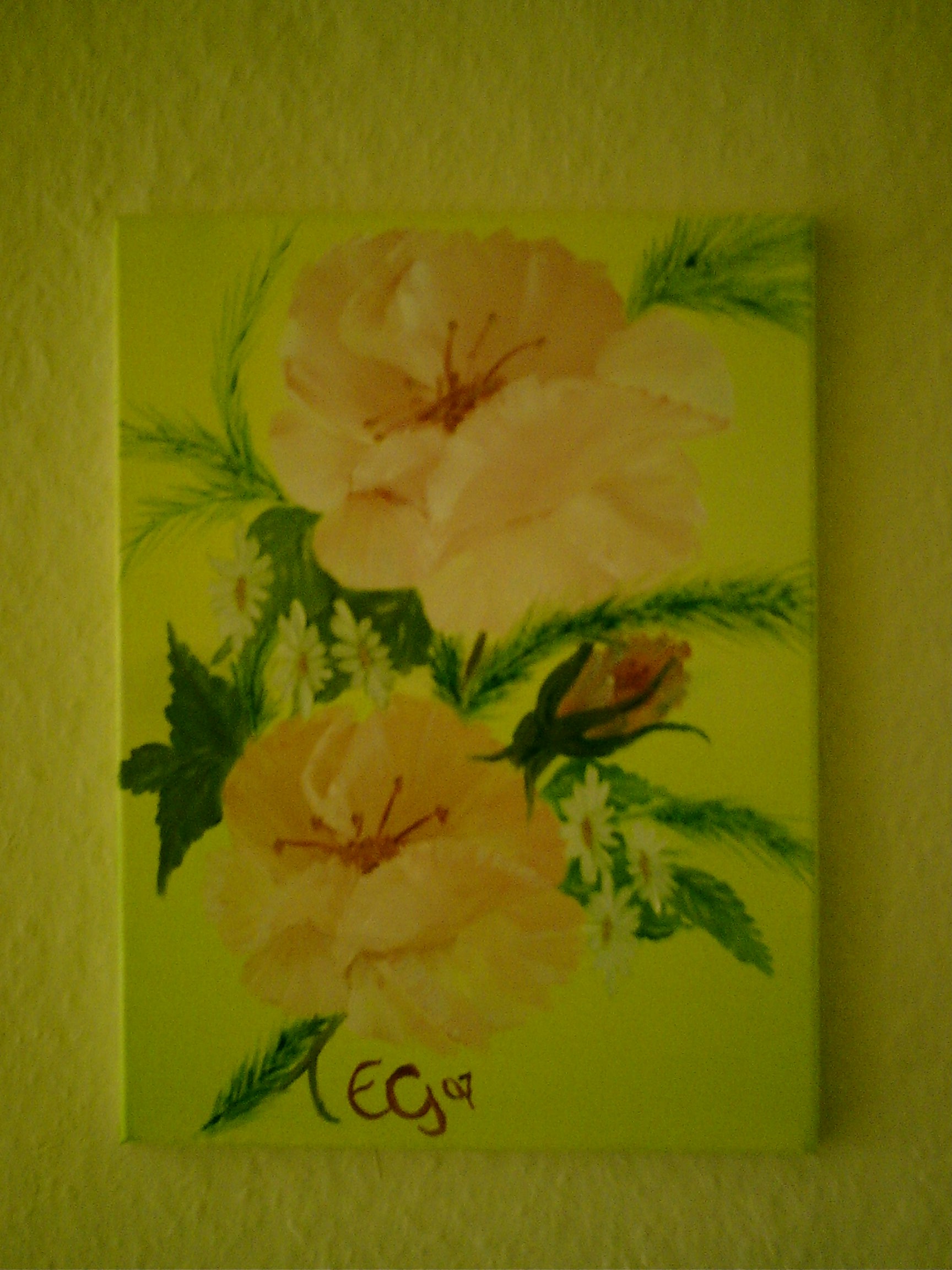 Bilder von Elviera Gasse in Öl-, Misch-, Acryltechnik. Die Vorliebe für Blumen und Energiebilder entsteht aus dem tiefen inneren Gefühl auf der Suche nach Ruhe und Entspannung . Die Ruhe und Entspannung möchte sie mit ihren Bildern aber auch an die Betrachter der Bilder weitergeben.